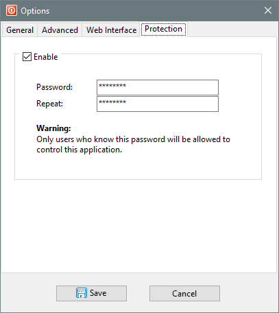 The protection feature locks down access to Shutter's graphical user interface. You will be required to enter a correct password every time you want to access Shutter.